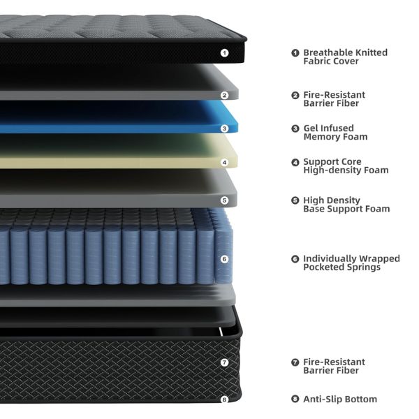 - Excellent Craftsmanship: The DAJIYUHC Mattress is built with a 5-layer foam system, an independent pocket spring layer, and a breathable knit cover. A gel-infused memory foam top layer keeps you cool, while the egg-crate foam design improves airflow. The cover enhances breathability by 30%, helping you sleep comfortably for longer.