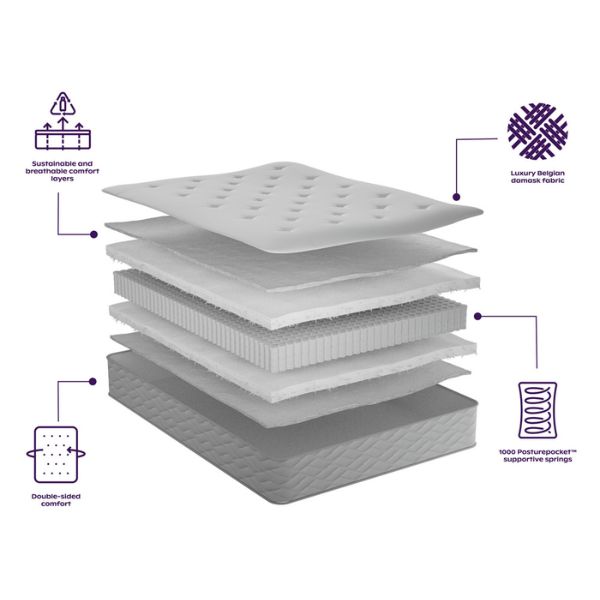 - 1000 Pocket Springs – Each spring moves independently, delivering responsive, body-contouring support for superior comfort.