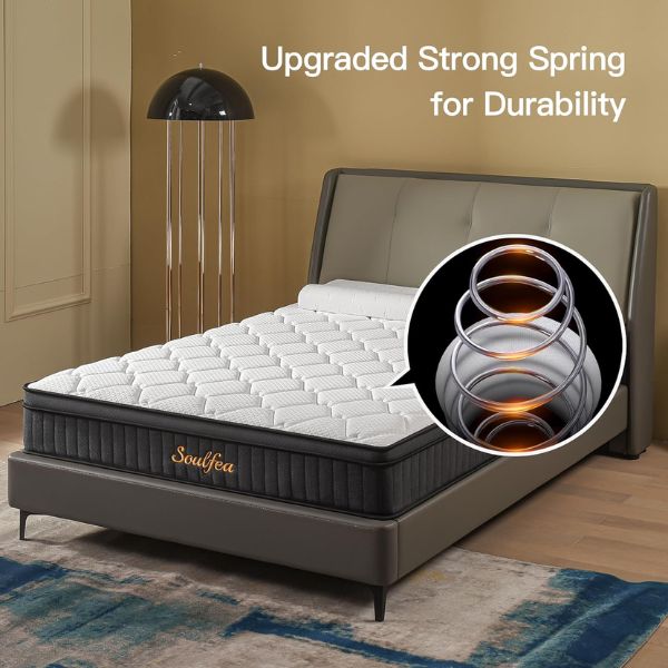 • Comfortable Support: The Soulfea Mattress is designed to provide exceptional support. The high-quality springs are carefully arranged to conform to your body’s curves, ensuring a comfortable sleeping experience while relieving pressure points. It offers the perfect balance of firmness and softness to maintain proper spinal alignment.